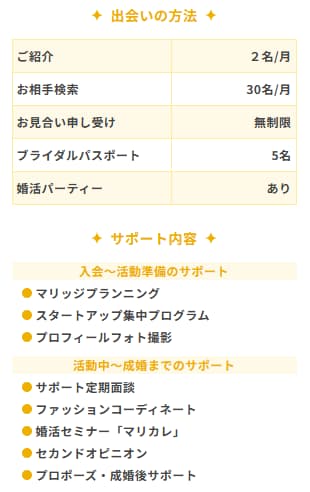 また、活動中〜成婚までのサポートに担当者による定期面談、ファッションコーディネート、セカンドオピニオンが加わっています。