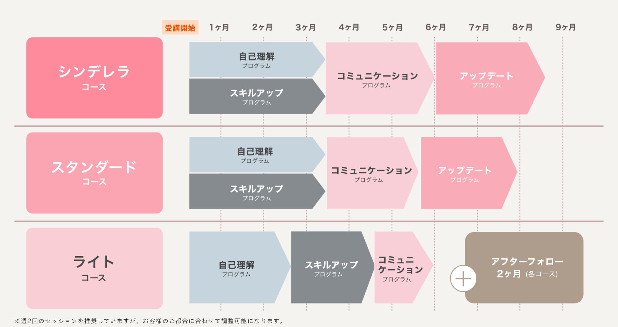 ・自己理解/スキルアップ/コミュニケーションの3つの柱で恋愛上手に導く