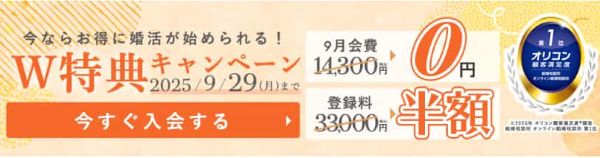 現在、9月の月会費14,300円分と登録料33,000円が無料になる超お得なキャンペーン中!